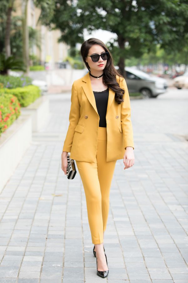 Dáng blazer cơ bản với 2 hàng cúc ngang