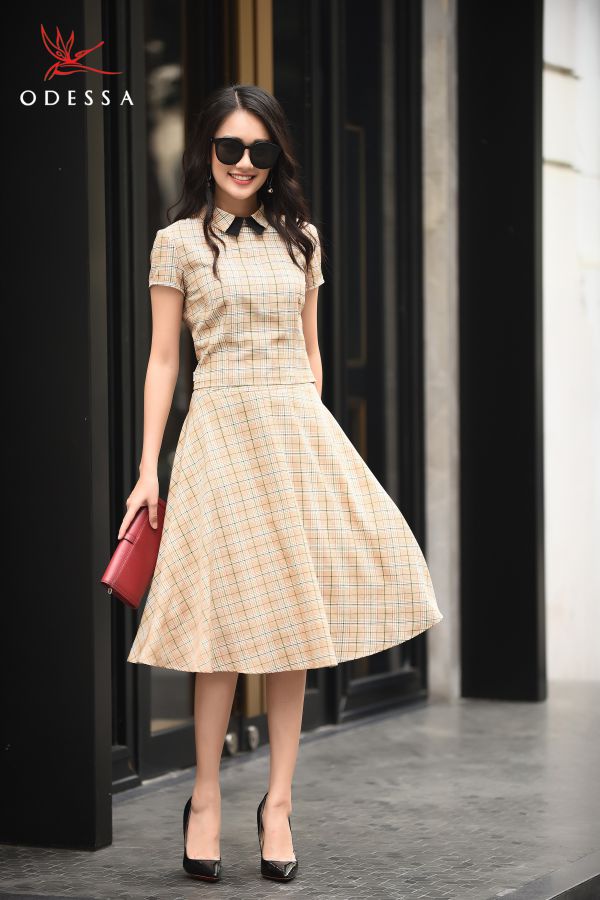 Áo sơ mi kẻ plaid diện theo set mang vẻ sang chảnh, quý phái