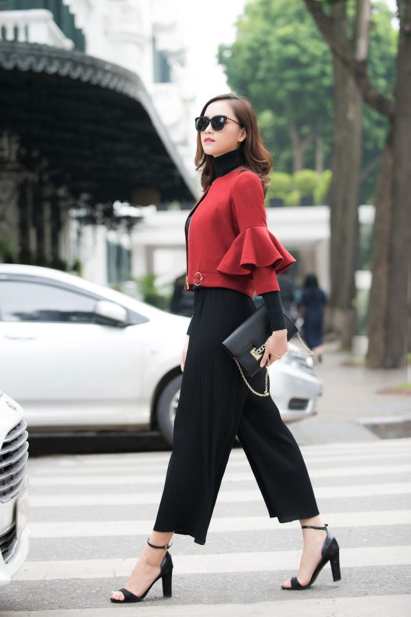 Nếu mùa hè, những chiếc quần ống rộng có chất liệu mỏng mát, có thiết kế dài trên mắt cá chân thì đông đến, bạn có thể chọn những mẫu quần dài chấm gót, có chất liệu dày dặn một chút. Chiếc quần ống rộng từng “gây sốt” mùa hè giờ đây lại trở lại và “lợi hại” hơn xưa nhờ cách mix & match vô cùng tinh tế của các tín đồ thời trang. Nhiều cô nàng sợ rằng mặc quần ống rộng dài quá gót sẽ khiến bạn luộm thuộm, nhưng đừng quá lo lắng, bởi những chiếc áo vest dáng ngắn sẽ giúp cân bằng set đồ của bạn. Và chắc chắn để có một set đồ hoàn hảo, bạn không thể không nhờ đến sự hỗ trợ của những đôi giày cao gót. Phụ kiện tưởng chừng như nhỏ bé này lại là item “cứu cánh” cho cả set đồ của bạn đấy.
