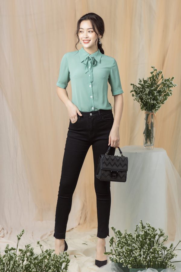 Với bạn gái có thân hình đồng hồ cát, những thiết kế áo sơ mi cổ chữ V hay áo cổ vuông, cổ đắp chéo sẽ là lợi thế giúp bạn khoe triệt để vòng 1 nở nang của mình. Tuy nhiên, bạn không nên chọn các thiết kế cổ xẻ quá sâu, tránh trường hợp lộ vòng 1 gây phản cảm trong mắt người đối diện.