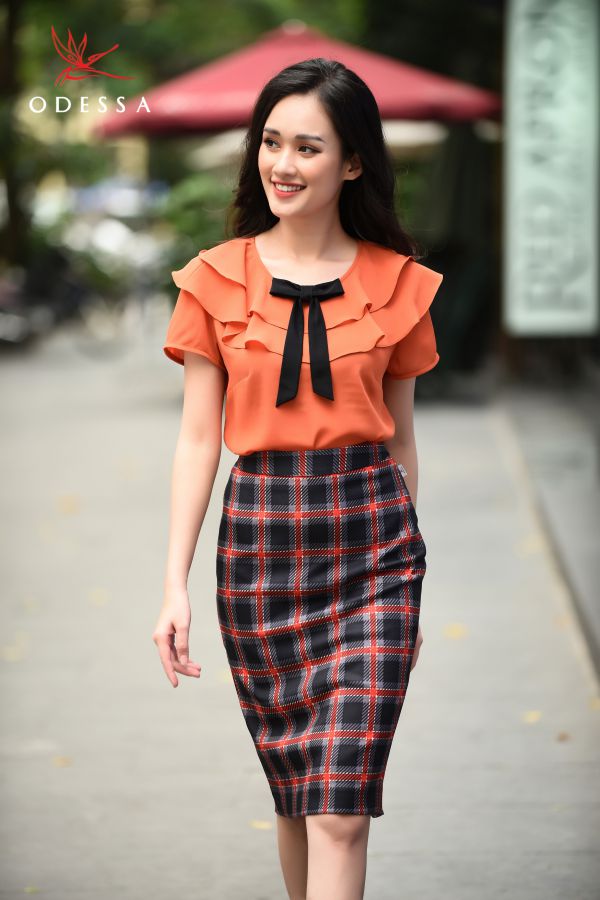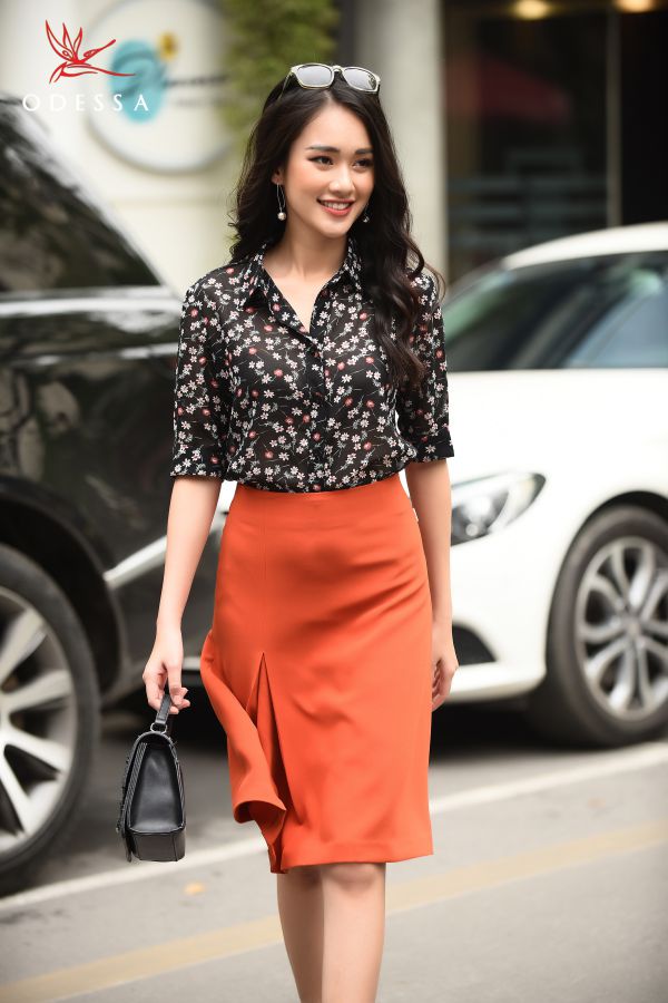 Một mẫu áo tối màu kết hợp với chân váy có gam màu rực rỡ không chỉ giúp bạn che khuyết điểm mà còn giúp bạn thêm ấn tượng.