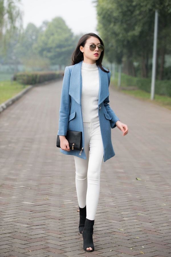 Đặc trưng của dáng quần skinny là ôm sát đôi chân, giúp bạn gái khoe đôi chân thẳng tắp cùng với vóc dáng ngọc ngà của mình. Tuy nhiên, không phải ai cũng có vóc dáng hoàn hảo, thậm chí có rất nhiều người mắc khuyết điểm ở đôi chân như đùi to, chân ngắn, nhưng vẫn thích mặc quần skinny trắng. Đừng quá tự ti về điều đó, chỉ cần mix với áo mangto sẽ giúp bạn khéo che khuyết điểm của mình.