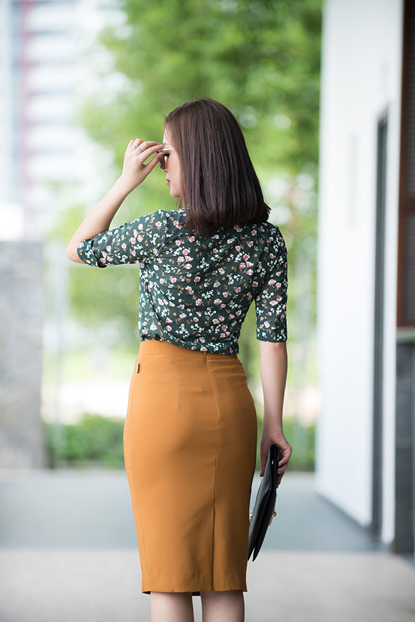 Áo sơ mi họa tiết hoa cơ bản dễ dàng kết hợp với chân váy bút chì