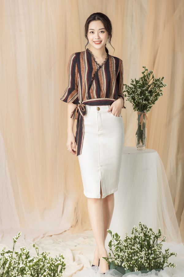 Chân váy xẻ tà trước rất quen thuộc với quý cô công sở.