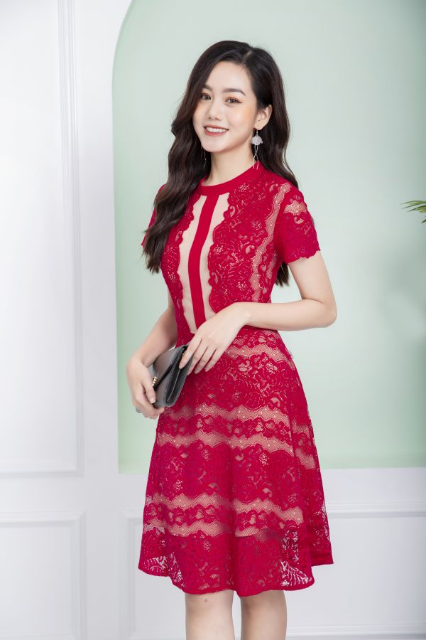 Đầm ren chữ A phù hợp với mọi vóc dáng.