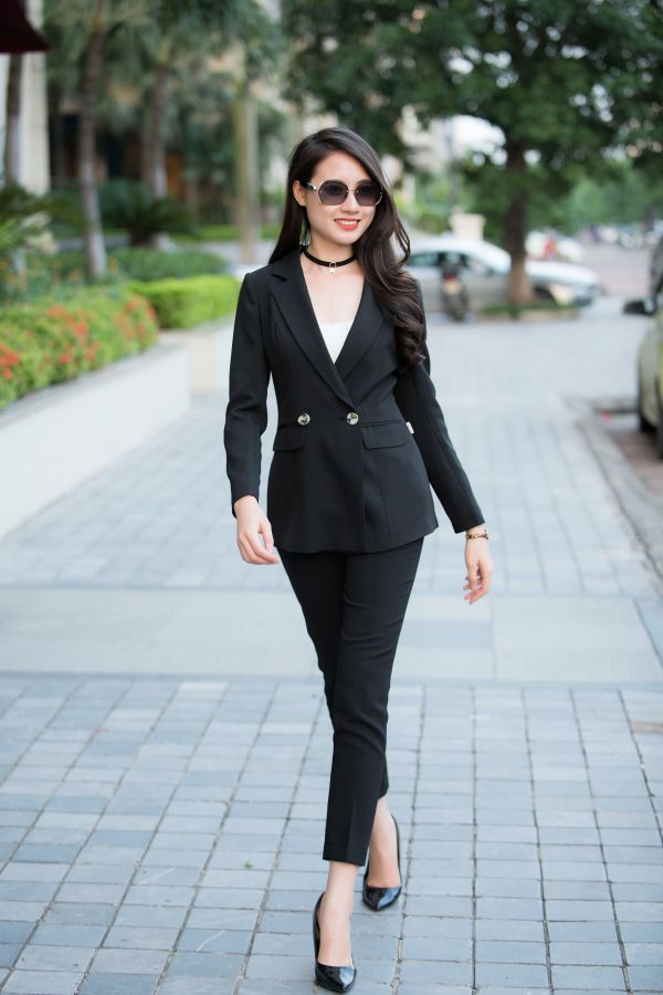 Bộ đôi áo vest, quần âu luôn là sự lựa chọn của nhiều quý cô trong nhiều hoàn cảnh.