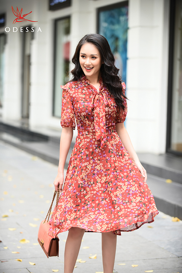 Nên chọn đầm đẹp họa tiết hoa nhỏ có điểm nhấn ở cổ, ngực, tay áo. Thiết kế đầm hoa nhí tăng hiệu ứng thị giác làm cho vóc dáng thanh mảnh hơn, những chi tiết điểm xuyết ở cổ, ngực hoặc áo giúp phân tán sự chú ý của người nhìn khỏi phần bụng mỡ.