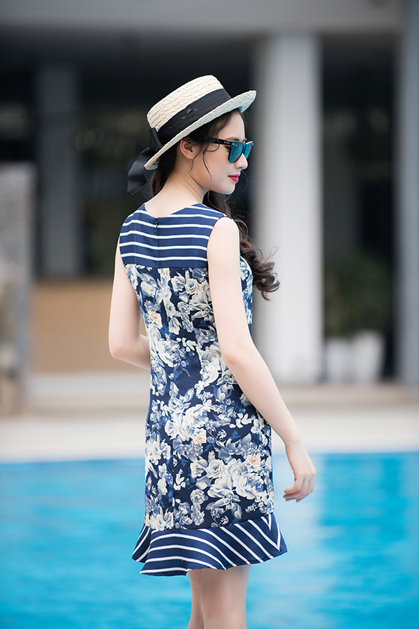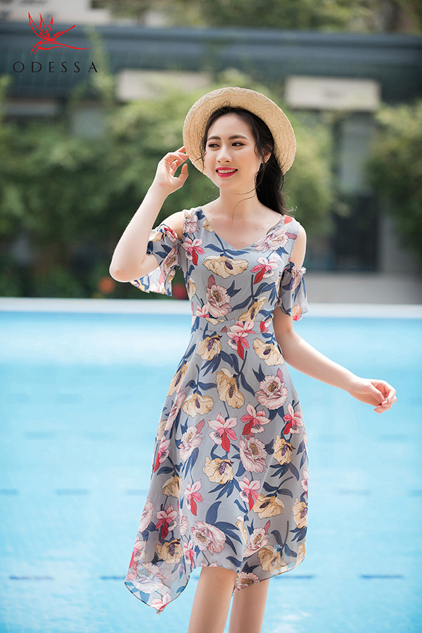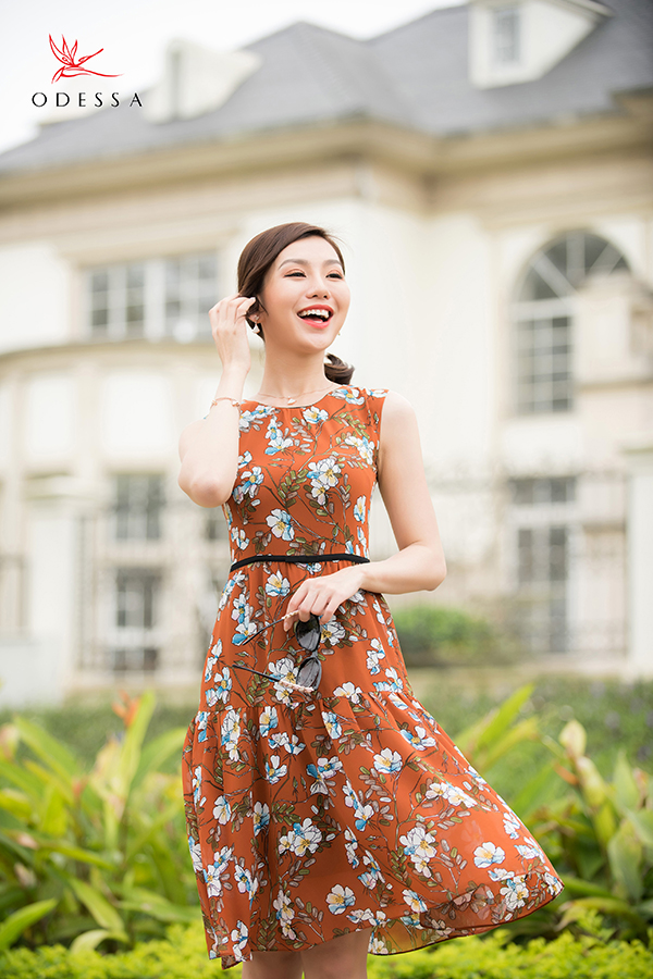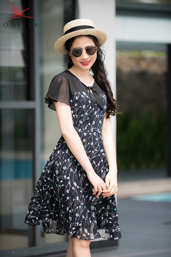 Đầm xòe họa tiết đơn giản, nhã nhặn