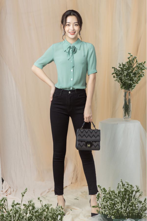 Ngoài màu xanh dương thì xanh lá cây cũng là gam màu các nàng mệnh Mộc nên mặc.