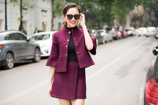 Tone màu tím đậm vốn tưởng khiến bạn già dặn nhưng với dáng vest và chân váy lạ mắt này bạn lại trở nên thật phong cách và khác lạ