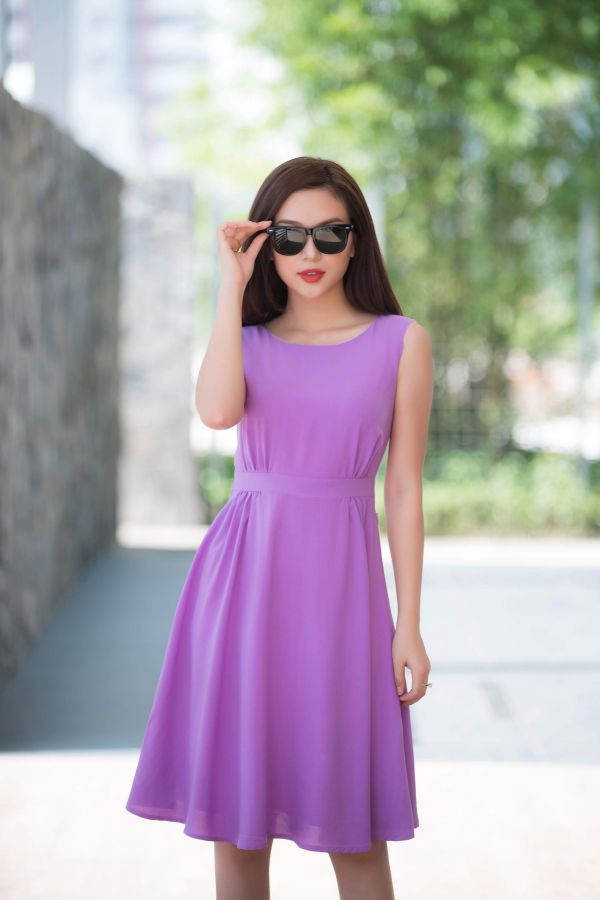 Những cô nàng tóc ngắn khi chọn trang phục mùa hè đừng bao giờ bỏ qua đầm xòe sát nách.