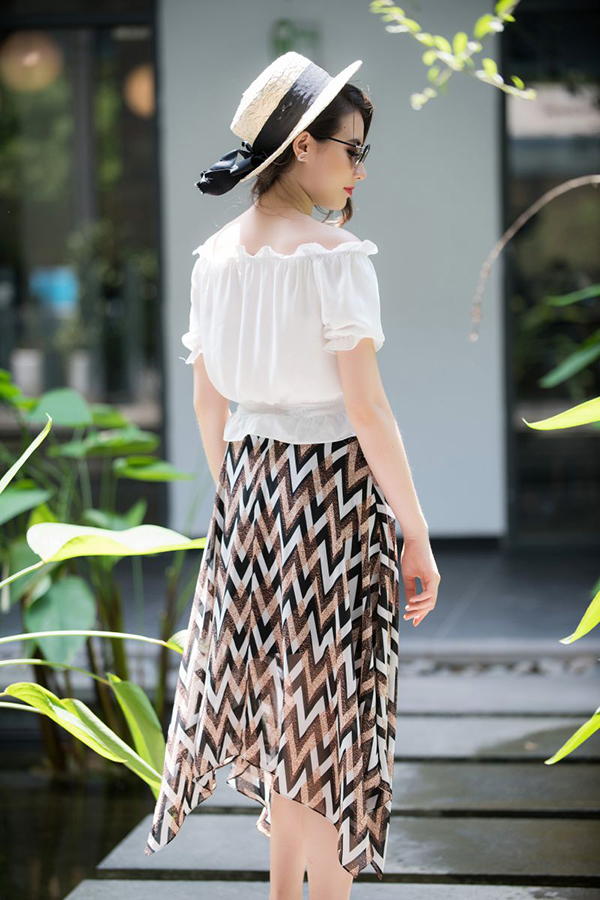 Chân váy midi họa tiết kẻ Ziczac mang đến cho quý cô vẻ đẹp thời thượng và cá tính