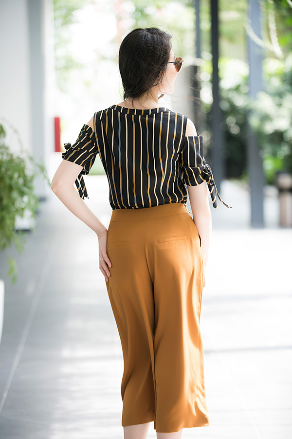 Dáng quần ống rộng cá tính kết hợp với những đường kẻ hot trend