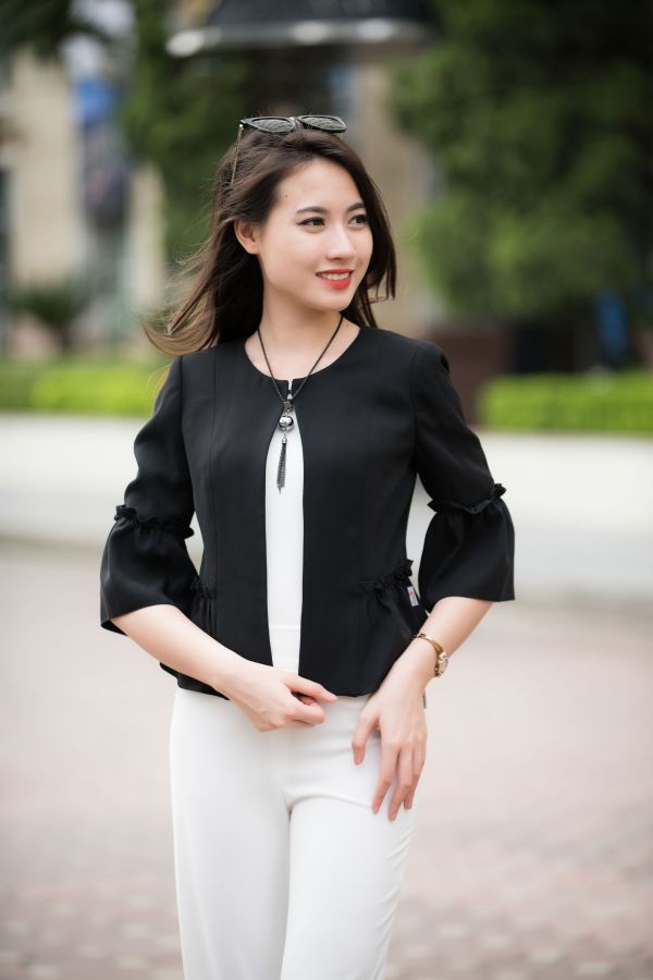 Trang phục đen trắng tuy không quá nổi bật nhưng lại toát lên sự thanh lịch, sang trọng mà không ai có thể phủ nhận. Đây cũng là trang phục hoàn hảo cho những ngày không biết mặc gì đi làm.