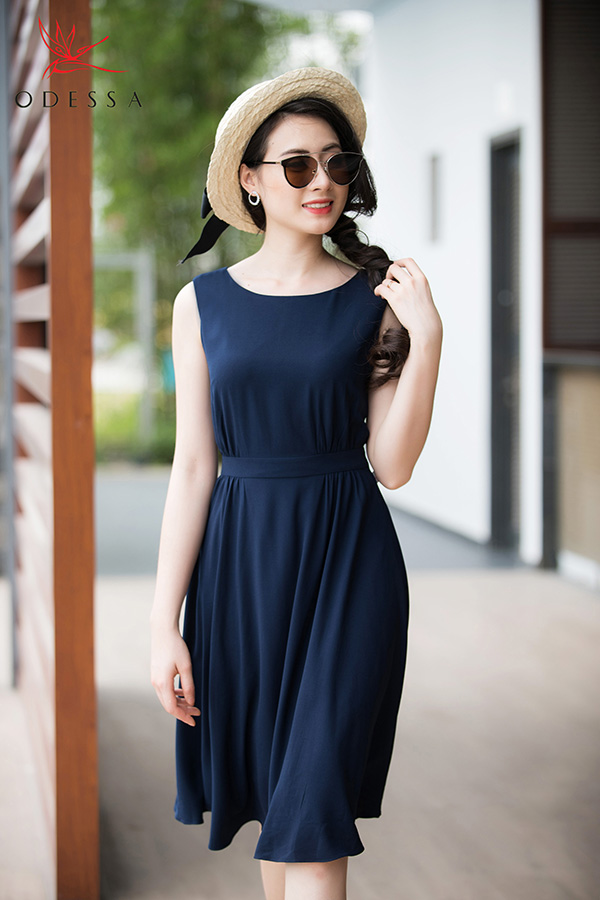 Đầm xòe đai eo thiết kế đơn giản thích hợp cho ngày bình dị chốn văn phòng