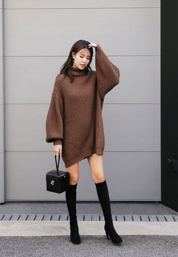 Đầm len oversizer phối boot cao cổ, rộng rãi mà vẫn sexy