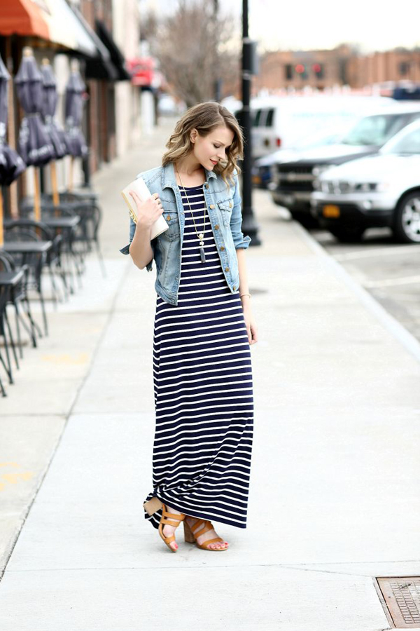 Đầm maxi phối với áo khoác denim cũng là lựa chọn dạo phố không tồi trong mùa đông