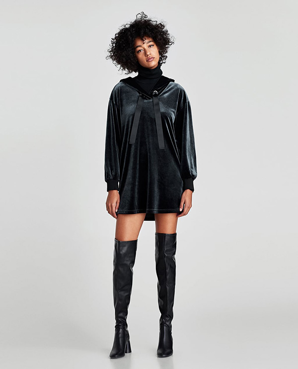 Đầm nhung và boot cao gót