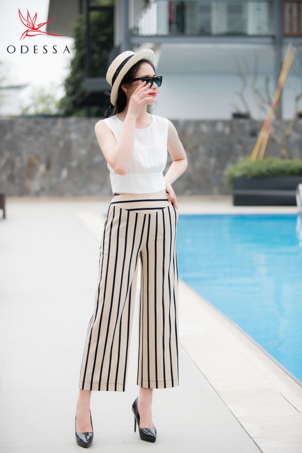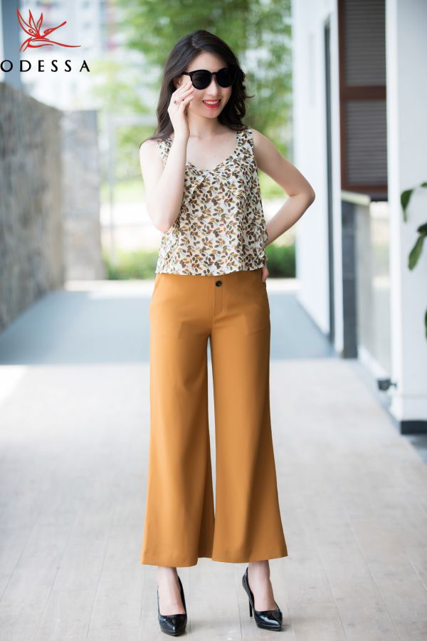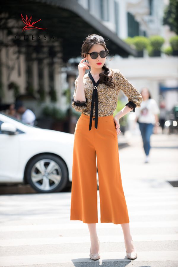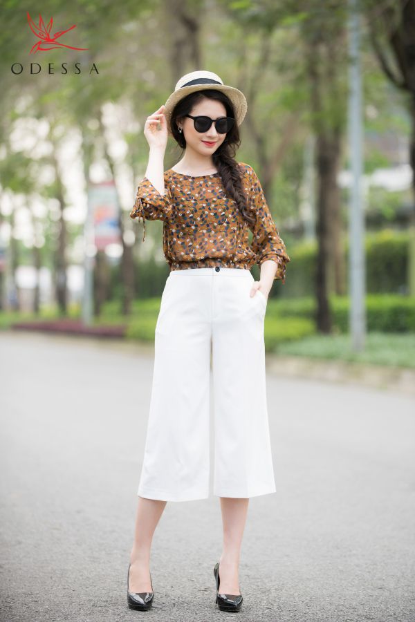 Với quần culottes, quý cô có thể mix đa dạng với nhiều kiểu áo khác nhau tùy thuộc vào từng hoàn cảnh. Nếu đi làm, một chiếc áo sơ mi họa tiết với những điểm nhấn nhẹ nhàng ở cổ, và tay áo sẽ giúp bạn ghi điểm tuyệt đối trước mặt đồng nghiệp. Nếu đi chơi, những chiếc áo hai dây thoáng mát, áo trễ vai quyến rũ phối với quần ống rộng sẽ cho bạn set đồ không thể trending hơn.