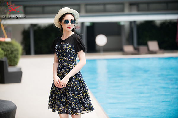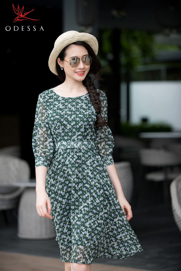 Đầm xòe họa tiết hoa nhí thanh lịch
