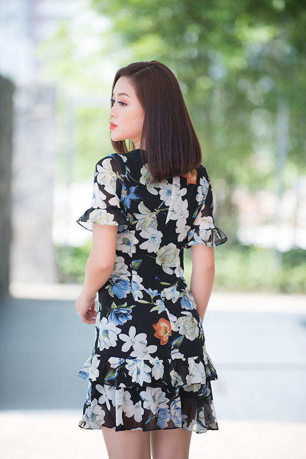Nếu vóc dáng kém xinh, hãy chọn dáng đầm xòe tone nền tối màu