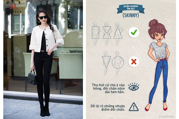 Có ba dáng người có thể diện quần Jeans Skinny đẹp, chuẩn style là dáng chữ nhật, dáng tam giác xuôi. Quần Jeans Skinny với dáng ôm sát cơ thể giúp thu hút sự chú ý vào hông và mông, đôi chân bạn sẽ trở nên thon gọn và dài hơn.