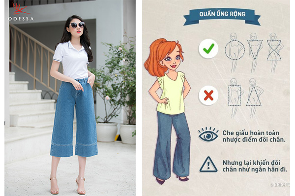 Tuy nhiên, mọi thứ đều có giá của nó, giấu được đôi chân kém xinh thì bạn cũng phải đánh đổi bằng chiều dài của chính đôi chân này. Do vậy, quần bò ống rộng không phải lựa chọn thông minh cho quý cô chân ngắn đâu nhé!