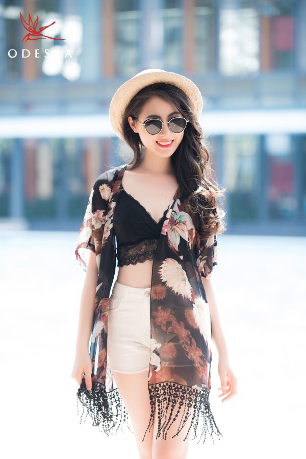Đây chắc hẳn là những item kinh điển cho mùa đi biển mà rất nhiều cô nàng đã bổ sung cho mình trước chuyến du lịch. Áo bra thường được thiết kế như chiếc áo lót nhưng có độ ôm lớn hơn một chút. Chính vì thế, những cô nàng không quen với việc “hở bạo” sẽ có phần ngại ngùng. Giải pháp ngay lúc này, chính là sắm cho mình một chiếc áo khoác kimono thời thượng. Áo kimono thường được làm từ vải voan, có đặc điểm là mỏng, nhẹ, dáng dài không chỉ giúp bạn che được những khoảng hở không mong muốn mà còn giúp bạn có một set đồ đi biển “chất lừ”.