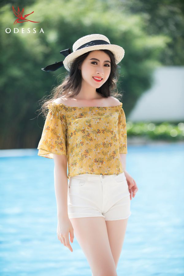 Với set áo trễ vai và quần short, bạn vừa kheo được bờ vai quyến rũ, vừa khoe được đôi chân dài miên man.