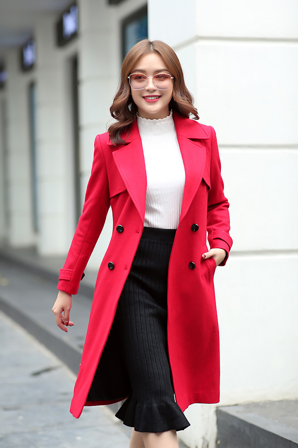 Áo khoác dạ dáng dài tone màu đỏ luôn mang đến cho phái đẹp vẻ tươi mới