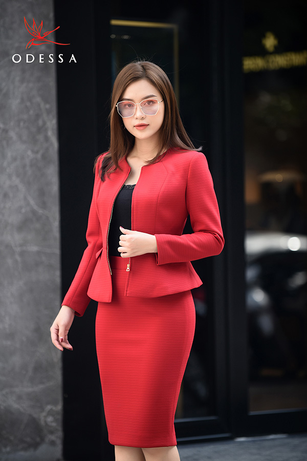 Nếu sự nổi bật của đầm đẹp màu đỏ hay áo khoác dạ đẹp, áo mangto nữ tính thanh lịch màu đỏ có thể được áp chế hoặc giảm nhẹ nhờ những trang phục đi kèm như áo, váy, áo khoác…nhưng sự nổi bật mà một set đồ màu đỏ lại không cách nào hạn chế được. Đó là khi bạn kết hợp một chiếc áo vest màu đỏ rực rỡ cùng chân váy hoặc quần cùng tone. Khi đó, bạn sẽ trở thành tiêu điểm của sự chú ý, hình mẫu cho sự tin và độc lập.