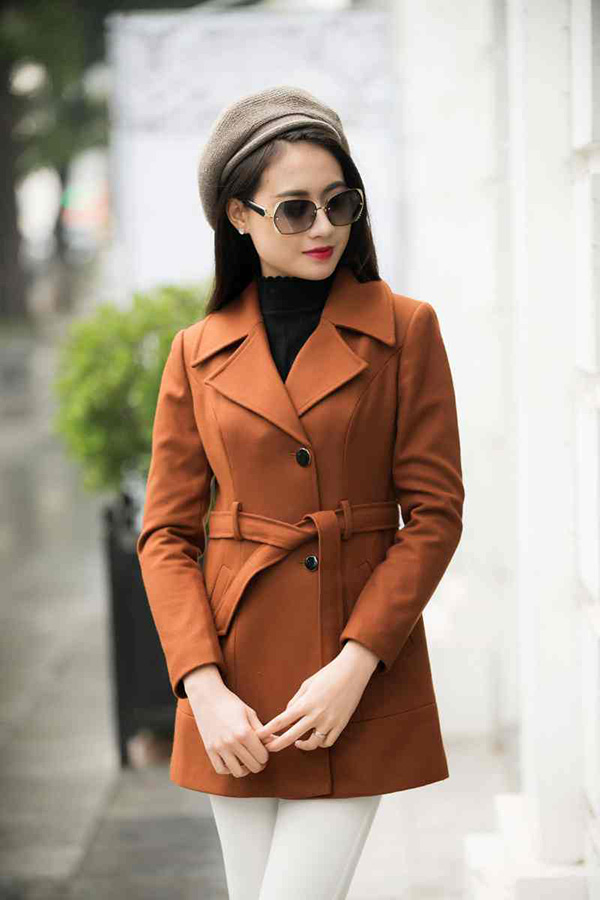 Mangto nữ màu nâu đất với đai thắt điệu đà