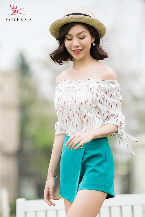 Sơ mi trễ vai diện cùng quần short trắng cho bạn nữ vẻ năng động, cá tính